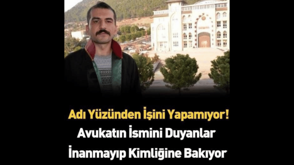Bu Avukat Adı Yüzünden İş Yapamıyor! Avukatın İsmini Duyanlar İnanmayıp Kimliğine Bakıyor! Kahramanmaraş’ta adamın adını duyanlar inanmayıp kimliğine bakıyor! İsmini duyanlar kulaklarına inanamıyor, kimliğine bakmak istiyorlar. 30 yıl önce Kahramanmaraş’ta yaşanan olayı duyan herkes hayrete düşüyor. Nüfus Müdürlüğündeki memura inat oğluna öyle bir isim koydu ki, duyan şaşıp kalıyor. İşte detaylar..