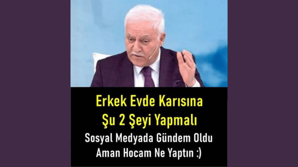 Nihat Hatipoğlu sonra da; ‘Elbisesini gerekirse kendi temizlemeli, ütülemeli. Kendi söküğünü dikebilmeli. Gerekirse kahve pişirip eşine ikram etmeli.’ dedi. Hatipoğlu sözlerine şöyle devam etti:’Ev işleri ağırlaştığında yükü paylaşmalı, eşi rahatsızlandığında onunla ilgilenmeli. Erkek aileyi ilgilendiren konularda da mutlaka karısına danışarak karar almalı.’ Nihat Hatipoğlu’nun bu sözleri kısa sürede sosyal medyanın gündemine oturdu.