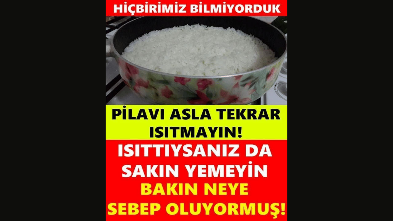 Pilavı 2 kere ısıtmayın.. Isıttıysanız da sakın yemeyin! Bakın neye sebep oluyor muş? Pirinç pilavı aşağı yukarıya her kişinin sevdiği bir yiyecek. Peki neden yeniden ısıtılmamalı? Tekrar ısıtılırsa neler olur? İşte bu yüzden pilavı asla tekrar ısıtmayın ve ısıttıysanız da Sakın yemeyin. Bakın neye hangi hastalığa sebep oluyormuș? İşte detayar..